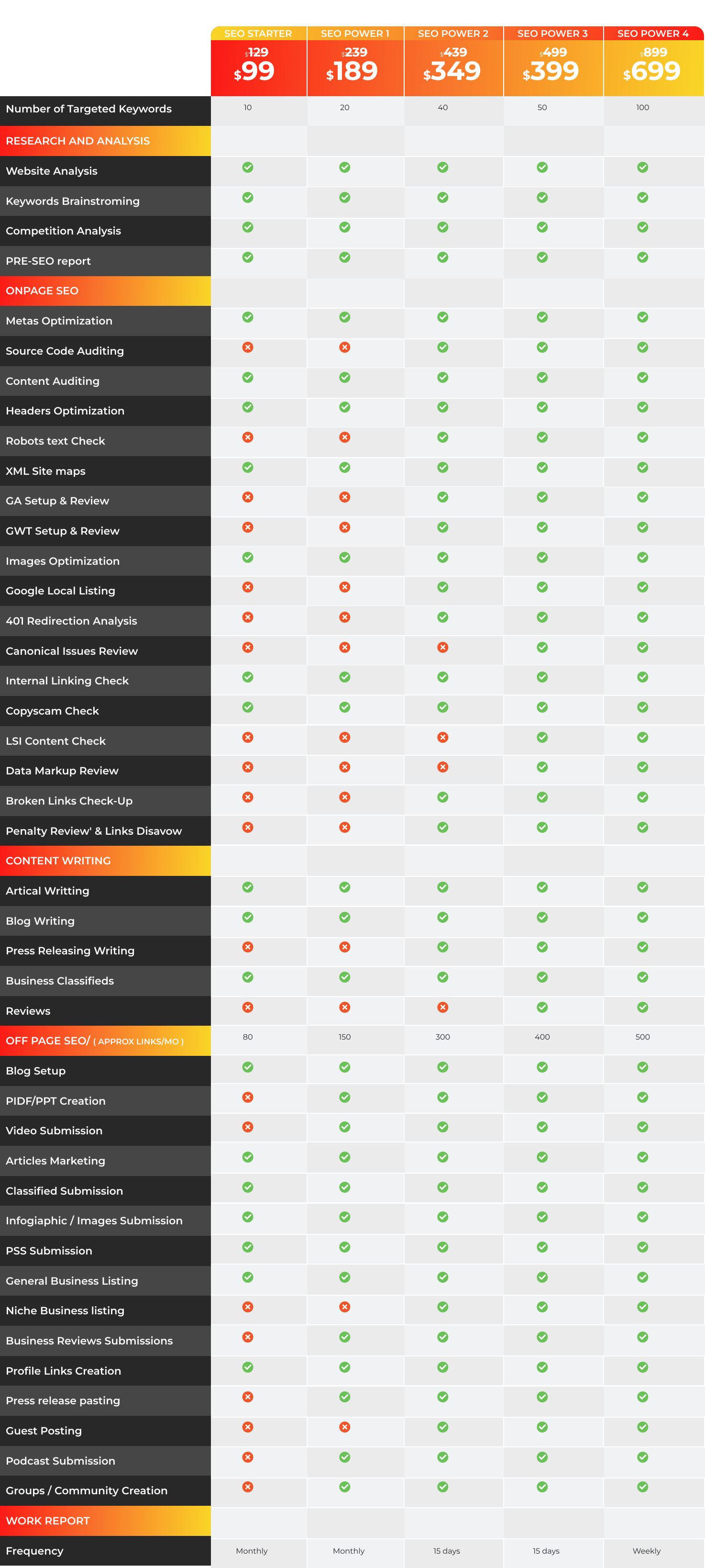 We also offer content marketing into highly trusted and authentic sites based on your niche along with profile link building with premium .orgs, .edus, and .govs. Our experts offer an array of website promotion activities based on your chosen package, and code review of your site along with implementing any necessary search engine tags to improve your site’s readability and rank.